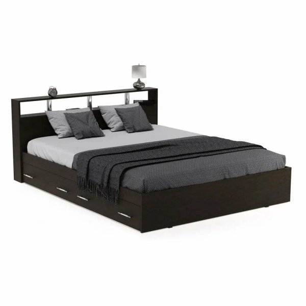 Прочная конструкция . Кровать выполнена из высококачественного ЛДСП, обладает прочным каркасом и оснащена надежной фурнитурой. Всё это гарантирует прочность и долговечность конструкции.