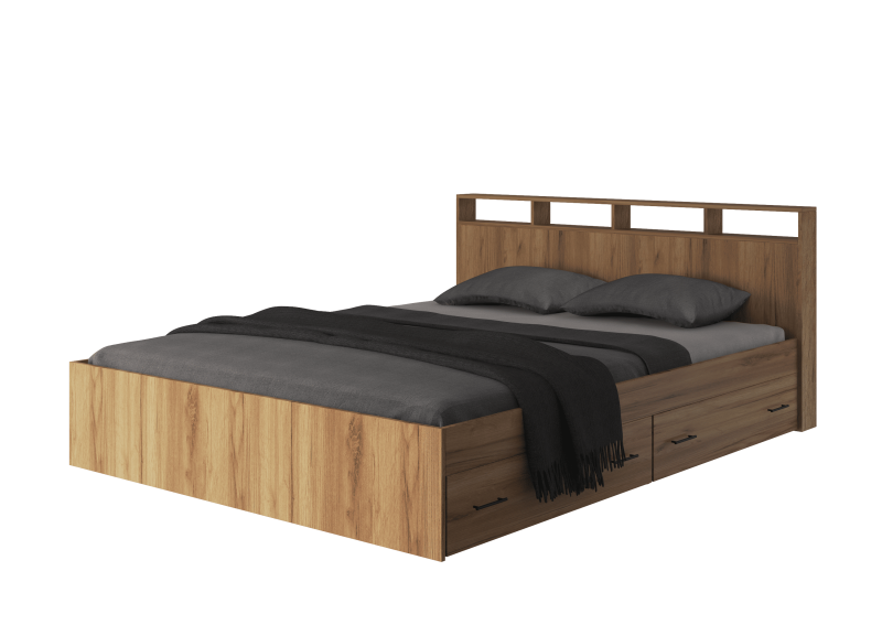 Прочная конструкция . Кровать выполнена из высококачественного ЛДСП, обладает прочным каркасом и оснащена надежной фурнитурой. Всё это гарантирует прочность и долговечность конструкции.