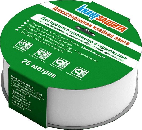 Скотч двухсторонний Knauf Insulation Для пароизоляционных пленок и гидро-ветрозащ. мембран