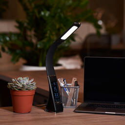 Настольный диммируемый светильник REXANT Cesar идеально подходит в качестве прикроватного светильника благодаря оптимальному мягкому свету, лаконичному дизайну и встроенному будильнику.