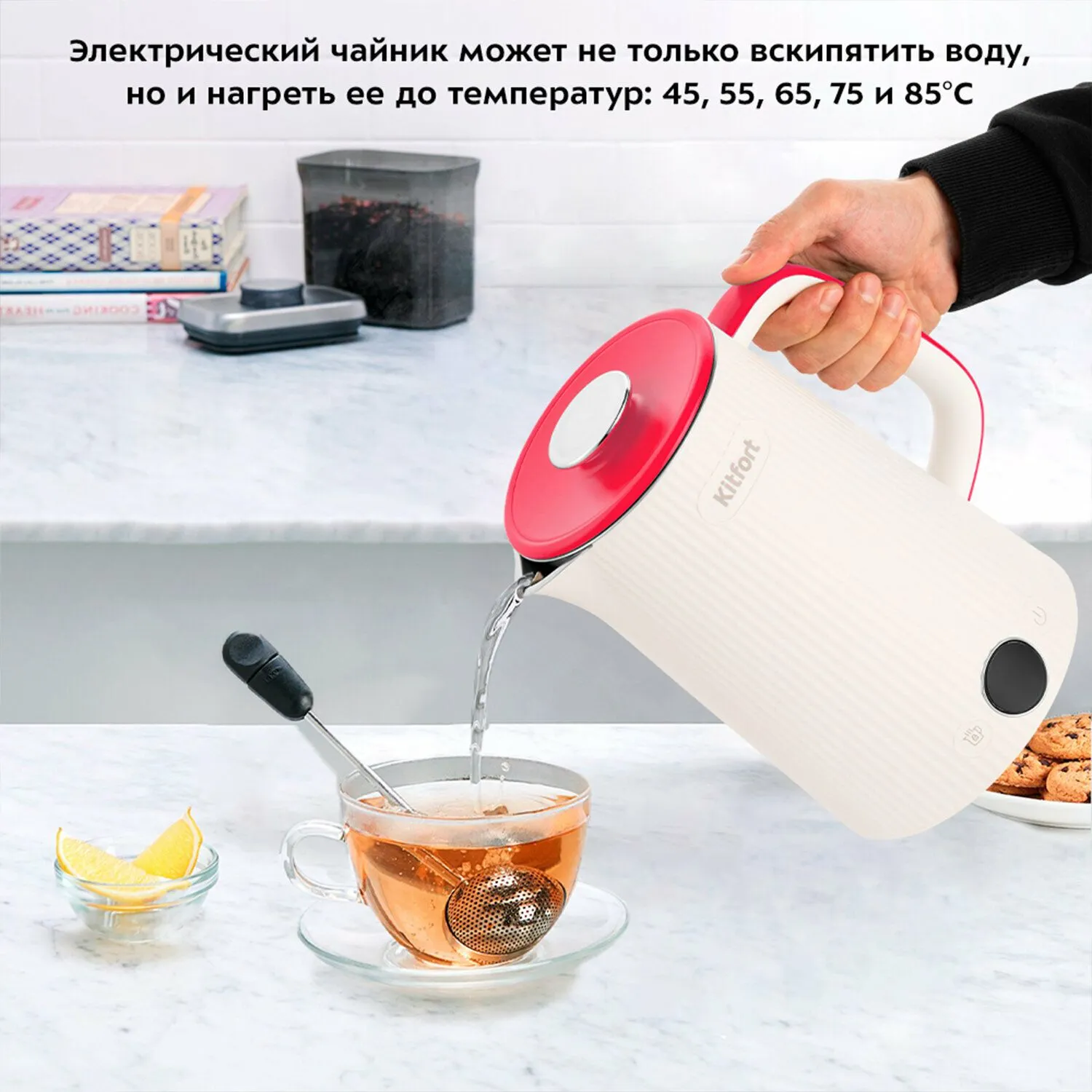 Описание товара Чайник электрический Kitfort КТ-6197-1 бело-малиновый