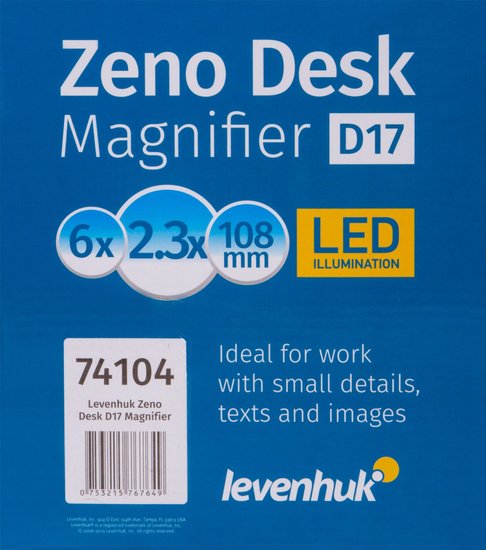 ✅ Лупа Levenhuk Zeno Desk D17 – это настольная модель с удобной светодиодной подсветкой. Ее можно легко закрепить на столе, дверце шкафа или полке, а гибкий штатив позволяет свободно поворачивать лупу в нужном направлении. Фиксация осуществляется с помощью надежного зажима-прищепки. Этот инструмент станет незаменимым помощником в ювелирных и часовых мастерских, а также на рабочем месте рукодельниц. Людям с творческими увлечениями лупа поможет при работе с мелкими деталями, такими как поклейка, сборка и окраска.✅ Линза лупы Levenhuk Zeno Desk D17 бифокальная: на области диаметром 108 мм она обеспечивает увеличение в 2,3 раза, а на небольшой отдельной области – 6 крат. Для защиты линзы от пыли и механических повреждений предусмотрена откидная крышка, которую можно закрывать после завершения работы. Блок подсветки включает 8 ярких светодиодов с возможностью регулировки яркости, что позволяет адаптировать освещение под ваши нужды. Для работы подсветки требуется подключение к сети.✅ Особенности:• Бифокальная линза с увеличением 2,3 и 6 крат• Надежное крепление-прищепка• Светодиодная подсветка с регулировкой яркости• Защитная откидная крышка линзы✅ Комплект поставки:• Лупа• Салфетка для очистки оптики• Шнур питания с вилкой• Инструкция по эксплуатации и гарантийный талон⚠️ Обратите внимание, что напряжение сети в России и большинстве европейских стран составляет 220–240 В. Если вы планируете использовать устройство в стране с другим стандартом напряжения, обязательно подключайте его через соответствующий конвертер.✅ Лупа Levenhuk Zeno Desk D17 – это настольная модель с удобной светодиодной подсветкой. Ее можно легко закрепить на столе, дверце шкафа или полке, а гибкий штатив позволяет свободно поворачивать лупу в нужном направлении. Фиксация осуществляется с помощью надежного зажима-прищепки. Этот инструмент станет незаменимым помощником в ювелирных и часовых мастерских, а также на рабочем месте рукодельниц. Людям с творческими увлечениями лупа поможет при работе с мелкими деталями, такими как поклейка, сборка и окраска.✅ Линза лупы Levenhuk Zeno Desk D17 бифокальная: на области диаметром 108 мм она обеспечивает увеличение в 2,3 раза, а на небольшой отдельной области – 6 крат. Для защиты линзы от пыли и механических повреждений предусмотрена откидная крышка, которую можно закрывать после завершения работы. Блок подсветки включает 8 ярких светодиодов с возможностью регулировки яркости, что позволяет адаптировать освещение под ваши нужды. Для работы подсветки требуется подключение к сети.✅ Особенности:• Бифокальная линза с увеличением 2,3 и 6 крат• Надежное крепление-прищепка• Светодиодная подсветка с регулировкой яркости• Защитная откидная крышка линзы✅ Комплект поставки:• Лупа• Салфетка для очистки оптики• Шнур питания с вилкой• Инструкция по эксплуатации и гарантийный талон⚠️ Обратите внимание, что напряжение сети в России и большинстве европейских стран составляет 220–240 В. Если вы планируете использовать устройство в стране с другим стандартом напряжения, обязательно подключайте его через соответствующий конвертер.