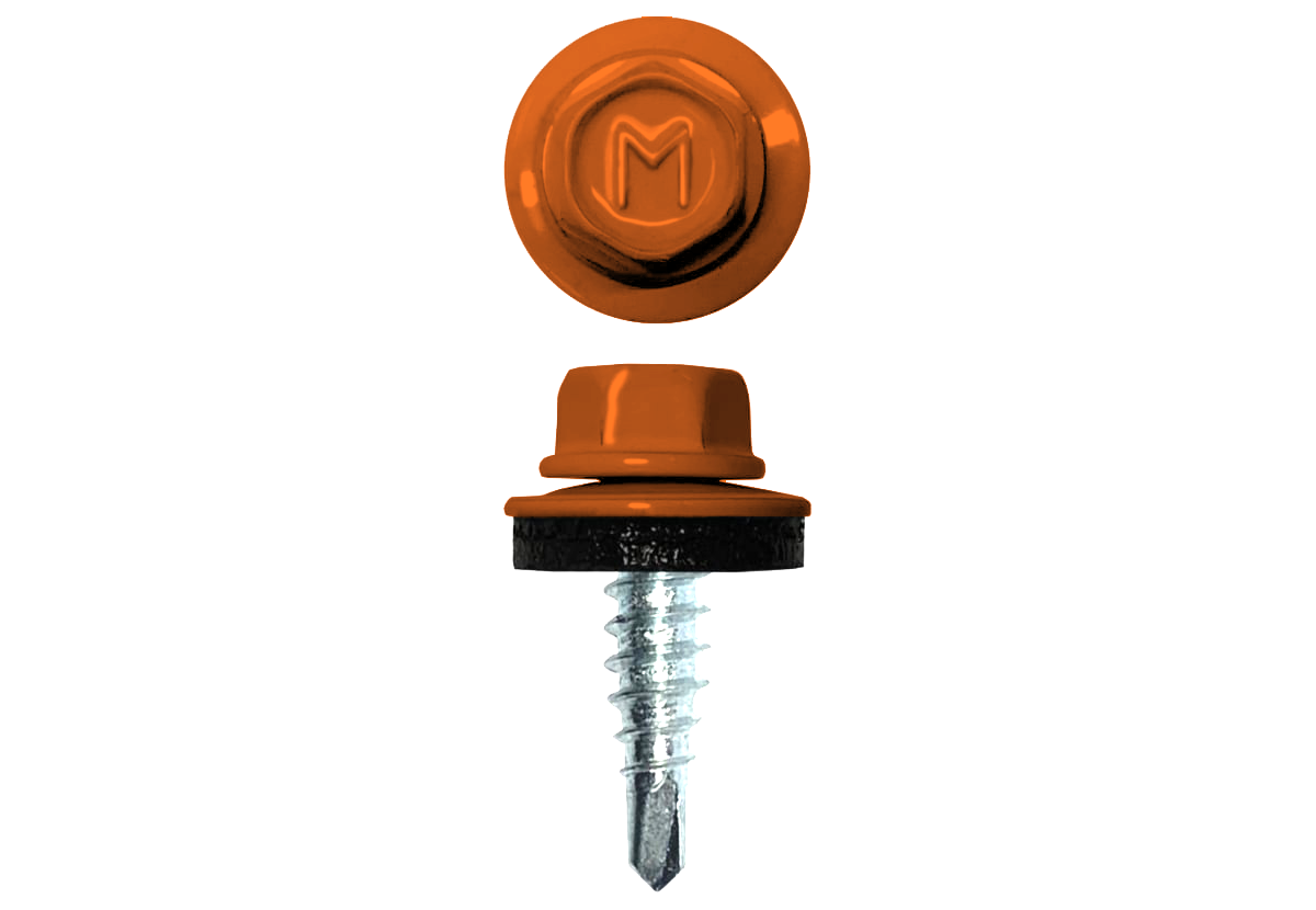 Кровельные саморезы Daxmer - по металлу имеют частую резьбу, а специальная металлическая шайба с ЕРDМ-уплотнителем 2,8 мм обеспечивает плотное прилегание профилированного металла (кровли) к обрешетке, а также препятствует попаданию влаги.