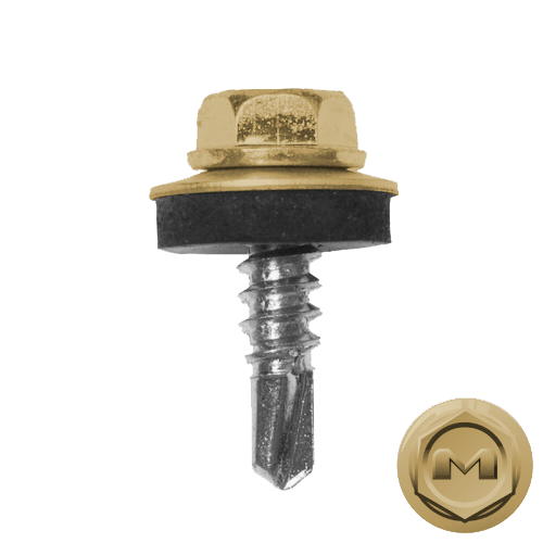 Кровельные саморезы Daxmer - по металлу имеют частую резьбу, а специальная металлическая шайба с ЕРDМ-уплотнителем 2,8 мм обеспечивает плотное прилегание профилированного металла (кровли) к обрешетке, а также препятствует попаданию влаги.