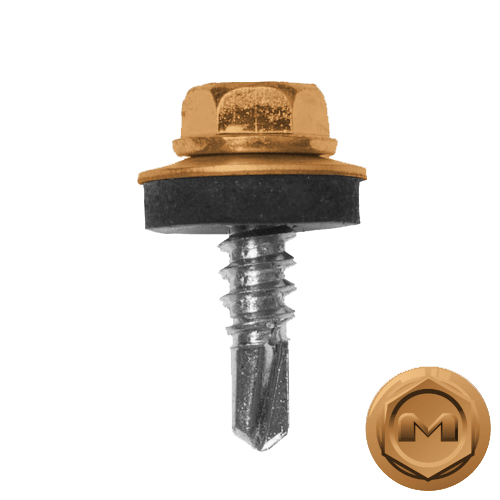 Кровельные саморезы Daxmer - по металлу имеют частую резьбу, а специальная металлическая шайба с ЕРDМ-уплотнителем 2,8 мм обеспечивает плотное прилегание профилированного металла (кровли) к обрешетке, а также препятствует попаданию влаги.
