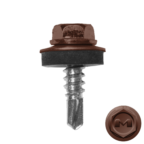 Кровельные саморезы Daxmer - по металлу имеют частую резьбу, а специальная металлическая шайба с ЕРDМ-уплотнителем 2,8 мм обеспечивает плотное прилегание профилированного металла (кровли) к обрешетке, а также препятствует попаданию влаги.