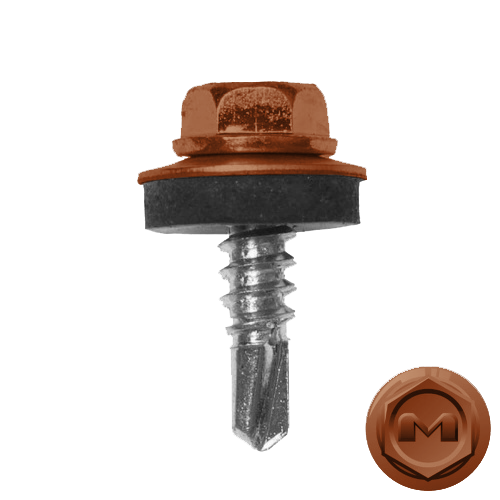 Кровельные саморезы Daxmer - по металлу имеют частую резьбу, а специальная металлическая шайба с ЕРDМ-уплотнителем 2,8 мм обеспечивает плотное прилегание профилированного металла (кровли) к обрешетке, а также препятствует попаданию влаги.