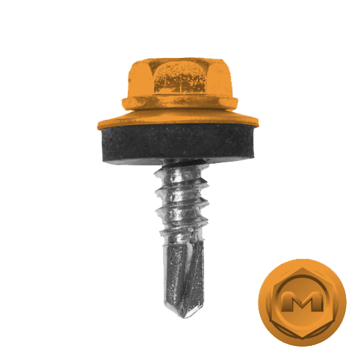 Кровельные саморезы Daxmer - по металлу имеют частую резьбу, а специальная металлическая шайба с ЕРDМ-уплотнителем 2,8 мм обеспечивает плотное прилегание профилированного металла (кровли) к обрешетке, а также препятствует попаданию влаги.
