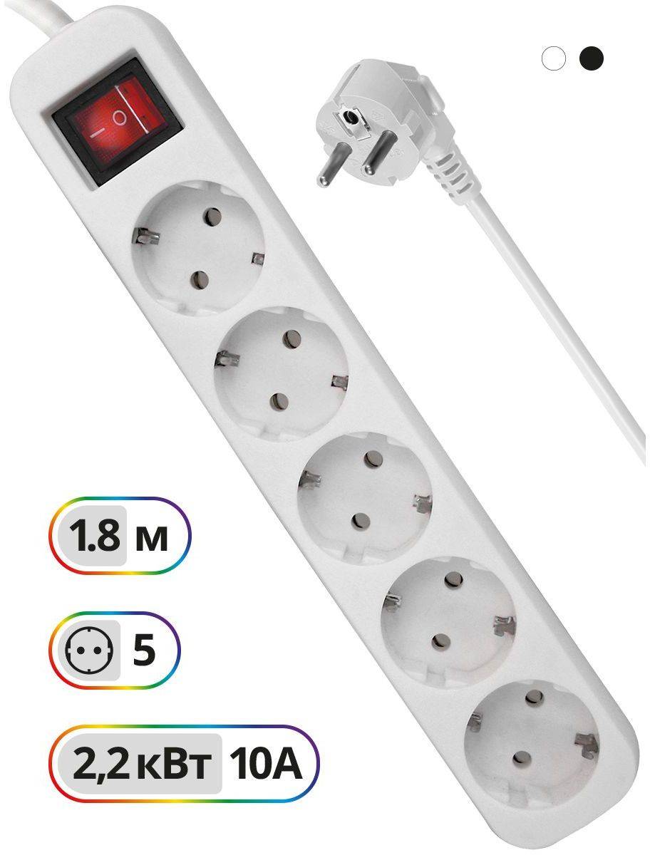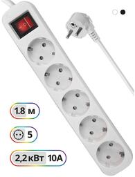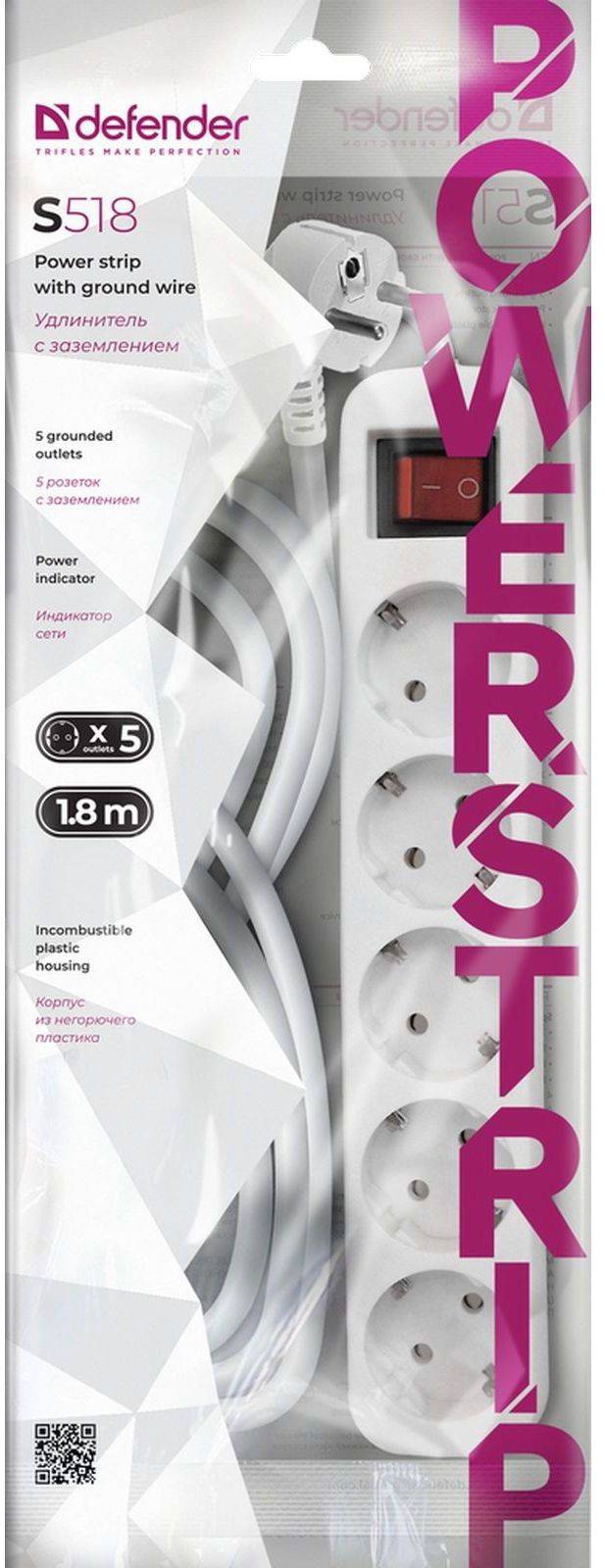 Сетевой удлинитель Defender S518 1.8м белый (99241)