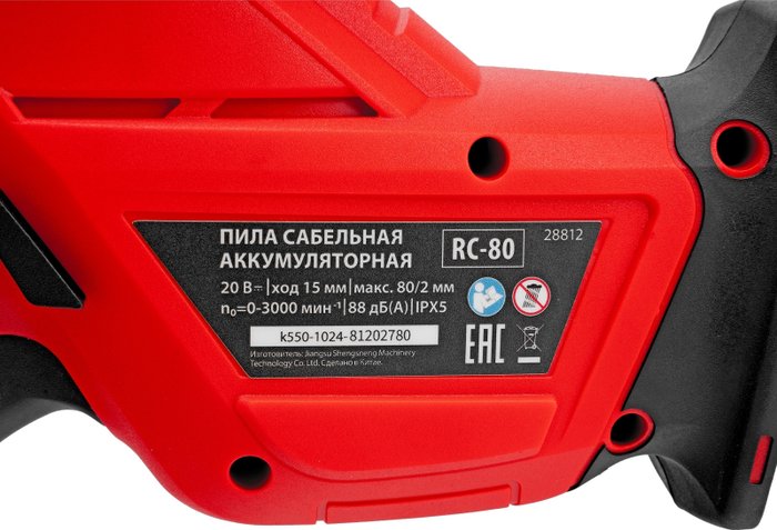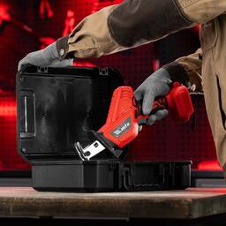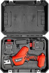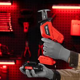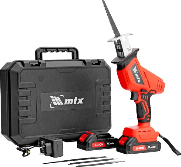 Комплектация- Пила сабельная аккумуляторная;- Аккумуляторная батарея;- Зарядное устройство;- Полотно пильное по дереву;- Полотно пильное по металлу;- Руководство по эксплуатации с гарантийным талоном;