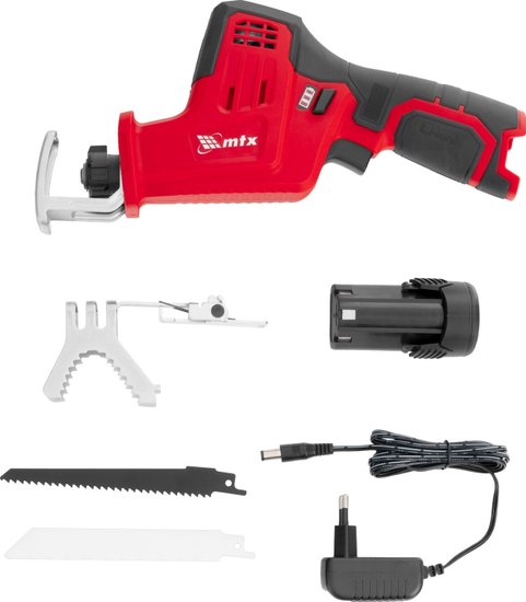 Комплектация- Пила сабельная аккумуляторная;- А-образный упор;- Аккумуляторная батарея;- Зарядное устройство;- Полотно пильное по дереву;- Полотно пильное по металлу;- Руководство по эксплуатации с гарантийным талоном.