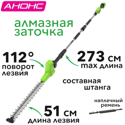 Аккумуляторный кусторез штанговый 51 см Greenworks 24V G24PH511 (арт. 2301907)