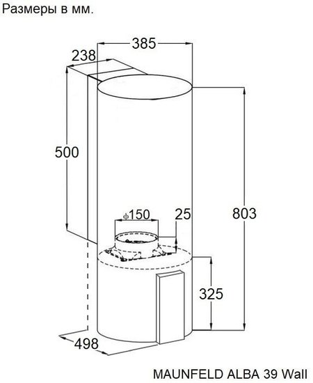 • Диаметр воздуховода 150 мм