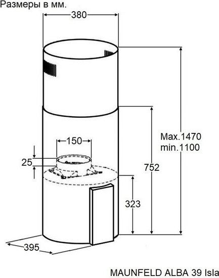 • Диаметр воздуховода 150 мм
