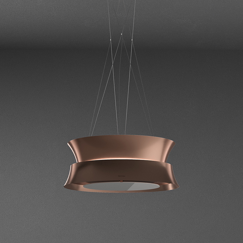 Вытяжка FALMEC DAMA IS.60 Copper, серия Circle.Tech, подвесная, 60 см, электронное управление, светодиодное освещение, периметральное всасывание, технология горизонтальной фильтрации, 4 скорости, рециркуляция, макс. Производительность 600 м3/ч, угольный фильтр в комплекте, горизонтальное вращение двигателя, пульт ДУ (опция), цвет медь