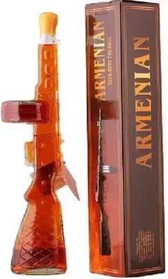 Avtomat PPSh 5 Years Old - мягкий и бархатистый сувенирный коньяк трехлетней выдержки, покоряющий своим слегка терпким вкусом и долгим, приятным послевкусием. Его темно-золотистый цвет выгодно подчеркивает оригинальную бутылку, изготовленную ручным методом по народным армянским технологиям. Коньяк "Аспети" Автомат Калашникова способен стать ярким и достойным подарком, неординарным украшением праздничного стола и стильным дополнением домашней коллекции.