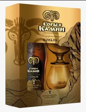 Коньяк армянский Горы и Камни 7-летний, 0.5 л в подарочной упаковке с двумя бокалами