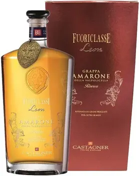 Как и все граппы линейки "Фуориклассе Леон", "Fuoriclasse Leon" Amarone della Valpolicella Riserva — напиток высокого класса, сочетающий ароматическую сложность и обволакивающий, интенсивный, мягкий вкус. Граппа производится из выжимок от вина Амароне, изготавливаемого из подвяленного винограда сортов Молина, Корвина и Рондинелла. По прибытии на завод выжимки обрабатываются и сохраняются по системе Grappa System®, созданной Роберто Кастаньером, благодаря чему аромат винограда сохраняется целым и полностью естественным несколько недель. Дистилляция осуществляется частично в традиционных кубах, а частично — в технологически совершенных системах, чтобы получить максимальный ароматический букет и максимальную утонченность вкуса. Для выдержки в течение более 18 месяцев граппа помещается в 225-литровые дубовые бочки того же типа, что используются для созревания вина Амароне делла Вальполичелла. Наилучшим образом граппа выразит себя в пузатых бокалах без ножки, именуемых "Bolla Castagner", поданная при 15-18 °С.