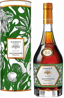 Cognac Godet Gastronome Organic XO in gift box (Коньяк Годэ Гастроном Органик ХО в подарочной упаковке) — моносортовый винтажный органический коньяк из Фен Буа 10-летней выдержки. Он имеет официальный сертификат EU Organic. Коньяк выдерживался в старинных дубовых бочках, возраст которых составляет 100 лет.