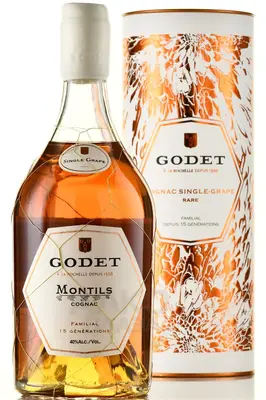 Godet Montils Single Grape Rare Cognac XO — уникальный коньяк, произведённый исключительно из винограда сорта Montils, который составляет менее 2% от всех виноградников региона Коньяк. Этот сорт почти исчез после эпидемии филлоксеры в XIX веке, но был восстановлен семьёй Годе, которая с 1980-х годов активно работает над возрождением редких сортов винограда, таких как Montils, Folle Blanche и Colombard.