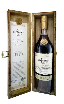 Арманьяк Monluc 1975 г — контролируемый по месту происхождения напиток из французского департамента Жер, деревни Сен-Пюи. Основой сорокаградусного алкоголя послужили спирты автохтонного белого винограда, собранного на избранных плантациях в 1975 году. Их подвергли выдержке в бочках из дуба на протяжении как минимум 40 лет. Исключительность продукта подчеркивает упаковка: бутылка размещена в элегантном деревянном ящичке.