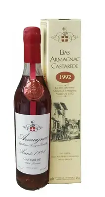 Castarede Armagnac, 1992 — арманьяк с великолепным, многогранным вкусом и незабываемым ароматом. Он изготовлен из белого вина, произведенного из белого винограда с повышенной кислотностью и низким содержанием алкоголя. Перегонка происходит методом одинарной дистилляции и длится всю зиму вплоть до 31 марта. Далее следует процесс старения, что является важнейшим этапом в изготовлении арманьяка "Castarede": арманьяк помещают в 400-литровые дубовые бочки ручной работы, выжженные изнутри. Кроме этого, для старения немаловажным условием являются изотермические условия и микроклимат.