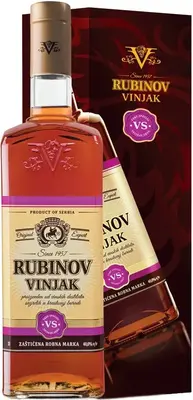 "Rubinov" Vinjak VS изготавливают из широко распространенного местного сорта винограда Прокупац. Он обладает высоким уровнем кислотности, который препятствует быстрому окислению сусла. Виноград полностью отделяют от гребней, шкурок и косточек после деликатного отжима, чтобы избежать ненужной в данном случае танинности. После перегонки вина, дистиллят выдерживают в новых и старых бочках, изготовленных из дуба местных лесов не менее 2-х лет. "Рубинов" Виньяк ВС обладает всеми классическими характеристиками этого вида крепких напитков — теплом, бархатистостью и выраженными ванильными тонами в букете.