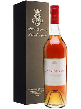 Bas-Armagnac du Chateau de Lacquy — превосходно сбалансированный, мягкий, легко пьющийся, классический миллезимный арманьяк, созданный из винограда сортов Уни Блан (40%), Коломбард (50%) и Бако (10%). Виноград дистиллируется в начале декабря, через 30-40 дней после сбора урожая, в собственных перегонных кубах хозяйства при температуре 52 °С и разливается в подвалах Шато де Лаки в 400-литровые дубовые бочки для последующей выдержки. Погреба для выдержки в Шато де Лаки являются одними из старейших и лучших в регионе. При производстве арманьяка не используются красители и добавки.