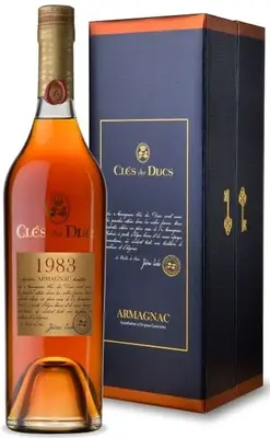 Классический винтажный арманьяк "Cles des Ducs" Millesime, Armagnac AOC произведен из винограда, выращенного в лучшей части провинции Арманьяк — на рыжих песчано-илистых почвах региона Ба-Арманьяк. Из белого винограда традиционных "коньячных" сортов, собранного в 1983 году, создали белое сухое вино традиционным методом. Виноградные спирты, дистиллированные из базового вина, поместили в новые и ранее использованные бочки из лимузенского дуба на многолетнюю выдержку. Вне зависимости от особенностей винтажа и удачности года, мастера подбирают такой профиль лимузенских бочек, чтобы добиться долгого, богатого и мягкого вкуса с легкой древесной ноткой.