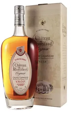 "Chateau de Montifaud" V.S.O.P. — великолепный коньяк, считающийся фамильной ценностью Шато де Монтифо. Этот коньяк, обладающий удивительно мягким и бархатистым вкусом, изготавливается из отборного винограда, выращенного в аппелласьоне Гран Шампань. Выдержка напитка составляет не менее 10 лет. Коньяк стареет в бочках из лимузенского дуба.