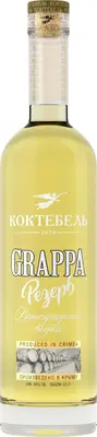 "Коктебель" Граппа Резерв — мягкая, гармоничная граппа, в производстве которой используются дистилляты из столовых виноматериалов и очищенная подготовленная вода. Приятный золотисты цвет напитка достигается путем выдержки граппы в течение полугода в дубовых бочках. Граппа обладает элегантным, приятным вкусом и ароматом с фруктовыми и винными оттенками, она хорошо сочетается с шоколадом, жирными сырами и колбасами. Также используется как ингредиент в кулинарии.