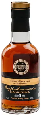 Коньяк "Congratulatory" 5 Years Old прошел пятилетнюю выдержку в бочонках из черного карабахского дуба. Виноград для него был выращен на собственных плантациях Прошянского завода, без добавления химических удобрений и пестицидов. Готовый напиток покоряет комплексным ароматом, в котором прослеживаются пряные, древесные и фруктовые оттенки. Коньяк "Поздравительный" 5-летний хорош как в самостоятельном виде, так и в паре с закусками.