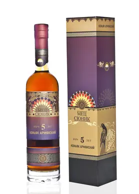 Коньяки "Мец Сюник" воплотили в себе мастерство армянских мастеров. Свое название они получили в честь одной из древнейших провинций древнего царства Армени — Сюник. В составе коньяка "Мец Сюник" 5-летний — виноградные дистилляты, созревавшие в дубовых бочках не менее 5 лет. Он обязательно найдет своих поклонников благодаря мягкому, обволакивающему вкусу и великолепно сбалансированному букету.