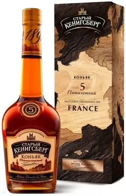 "Старый Кенигсберг" 5-летний — мягкий, бархатистый коньяк, созданный из лучших коньячных дистиллятов и выдержанный не менее пяти лет в дубовых бочках. Напиток демонстрирует мягкий, округлый вкус с продолжительным послевкусием и элегантный аромат, в котором гармонично сплелись фруктовые и цветочные оттенки.