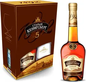 Коньяк российский Старый Кенигсберг 5 лет выдержки, 0.7 л в подарочной коробке с бокалом