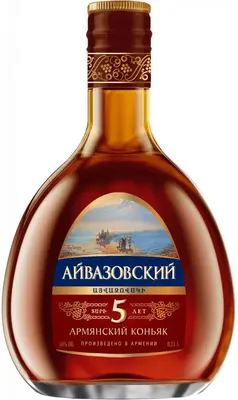 Элегантный коньяк "Айвазовский" 5-летний изготовлен по традиционному армянскому рецепту и обладает характерным, классическим вкусом коньяков Араратской Долины. Коньяк назван в честь художника-мариниста, Ивана Константиновича Айвазовского. Выдержка коньяка проводится в дубовых бочках и длится 5 лет. Коньяк рекомендуется употреблять в чистом виде, а также сочетать с мясными деликатесами, рыбой, сырами, десертами и спелыми абрикосами, добавлять в коктейли или кофе.