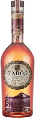 "Taros" 5 Years Old — армянский выдержанный коньяк безупречно высокого качества, изготовленный по классической технологии. В его производстве используются коньячные спирты, которые были созданы из винограда сортов Кангун, Меграбуйр и Ркацители, выращенного в благоприятных климатических условиях Араратской долины. Коньячные дистилляты выдерживаются в бочках из кавказского дуба в течение не менее 5 лет. Авторский купаж технолога Армена Аветисяна, талантливого профессионала и потомственного винодела, придает напитку уникальный стиль. Яркий аромат и мягкий вкус этого выдержанного коньяка придется по вкусу ценителям настоящих благородных крепких напитков.