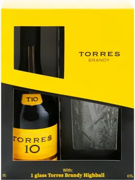 Бренди Torres 10 Gran Reserva, 0.5 л в подарочной упаковке со стаканом