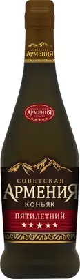 "Советская Армения" 5 лет — армянский коньяк, изготовленный по классической технологии из коньячных дистиллятов, выдержанных не менее пяти лет в дубовых бочках в погребах компании. В производстве используются исключительно аборигенные сорта винограда, выращенные на виноградниках компании в Армении и собранные в момент оптимальной зрелости. Мастерски проведенная процедура дистилляции профессионалами Прошянского Коньячного Завода позволила сохранить прекрасный аромат и вкус винограда. Выдержка в дубовых бочках подарила коньяку красивый окрас, мягкость вкуса и баланс. Коньяк прекрасен в качестве дижестива, а также в сочетании с кофе, сигарами и десертами.