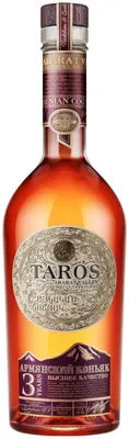 "Taros" 3 Years Old — армянский выдержанный коньяк безупречно высокого качества, изготовленный по классической технологии. В его производстве используются коньячные спирты, которые были созданы из винограда сортов Кангун, Меграбуйр и Ркацители, выращенного в благоприятных климатических условиях Араратской долины. Коньячные дистилляты выдерживаются в бочках из кавказского дуба в течение не менее 3-х лет. Авторский купаж технолога Армена Аветисяна, талантливого профессионала и потомственного винодела, придает напитку уникальный стиль. Яркий аромат и мягкий вкус этого выдержанного коньяка придется по вкусу ценителям настоящих благородных крепких напитков.