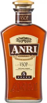 "Anri" VSOP — премиальный российский коньяк, изготовленный из купажа французских коньячных спиртов, выдержанных в течение 5 лет. Этот коньяк по достоинству оценят ценители коньяков французского стиля.