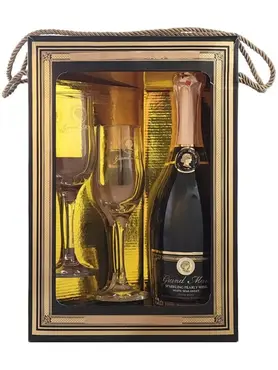 Вино игристое белое сухое Grand Mane, 0.75 л подарочный набор с двумя бокалами