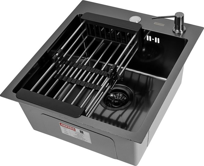 Eco AR мойка 450*500, коландер, дозатор BLACK DECOR MILLET GRAINS