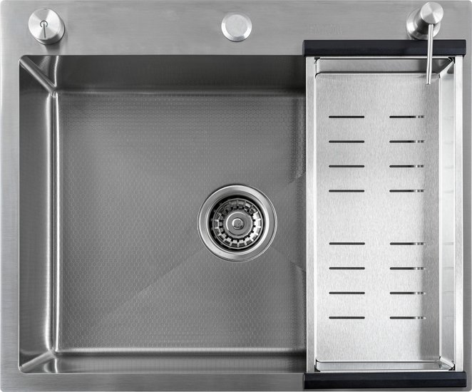 КомплектацияПолуавтоматический сифон Pop up, коландер(Сатин), гофра, дозатор для моющего средства(Сатин), мойка(Сатин), Смеситель