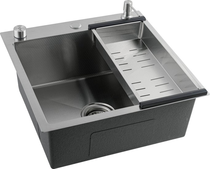 КомплектацияПолуавтоматический сифон Pop up, коландер(Сатин), гофра, дозатор для моющего средства(Сатин), мойка(Сатин), Смеситель