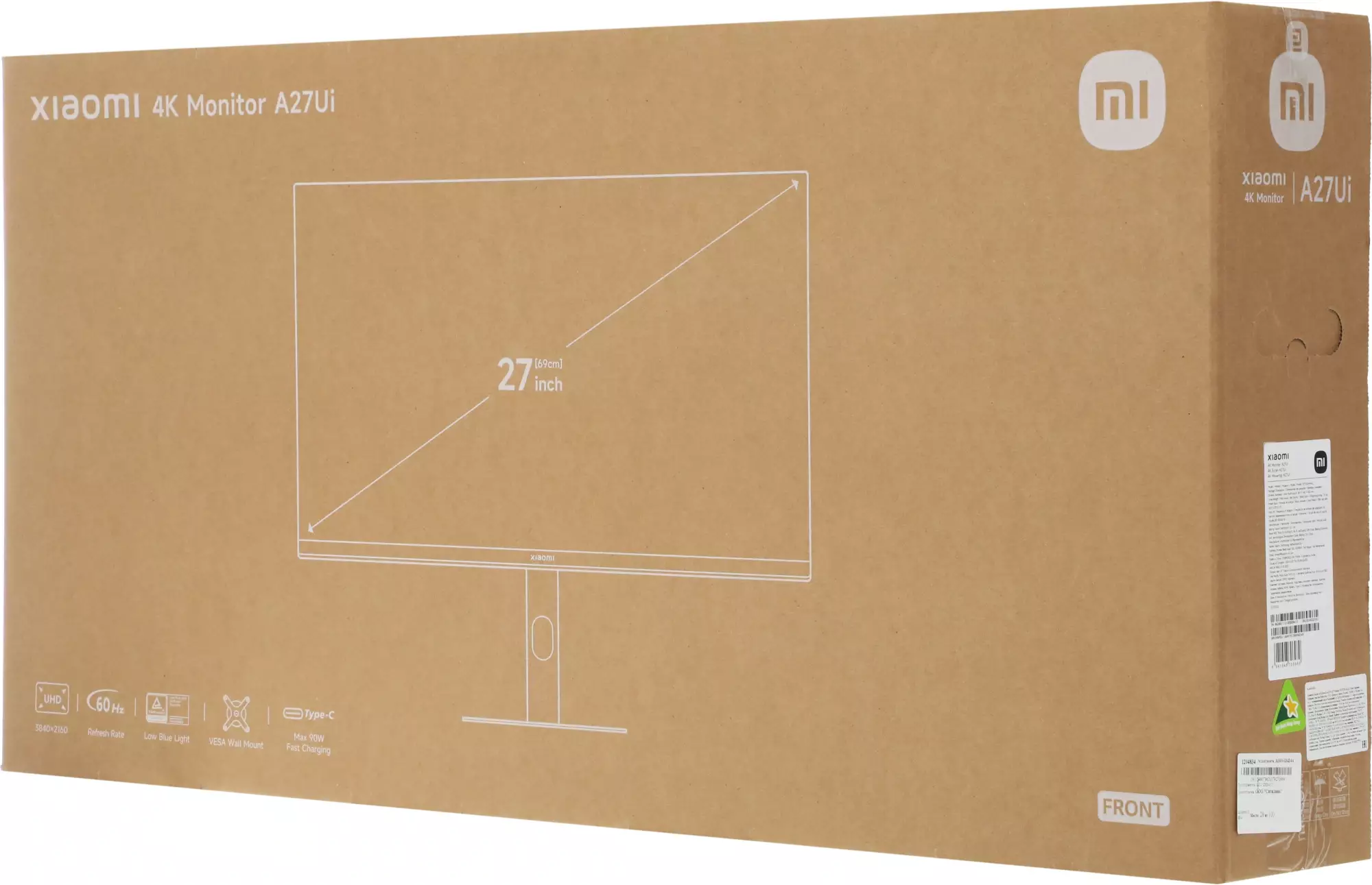 Монитор 27" Xiaomi 4K Monitor A27Ui, 3840х2160, 60 Гц, IPS, черный (ela6221eu)