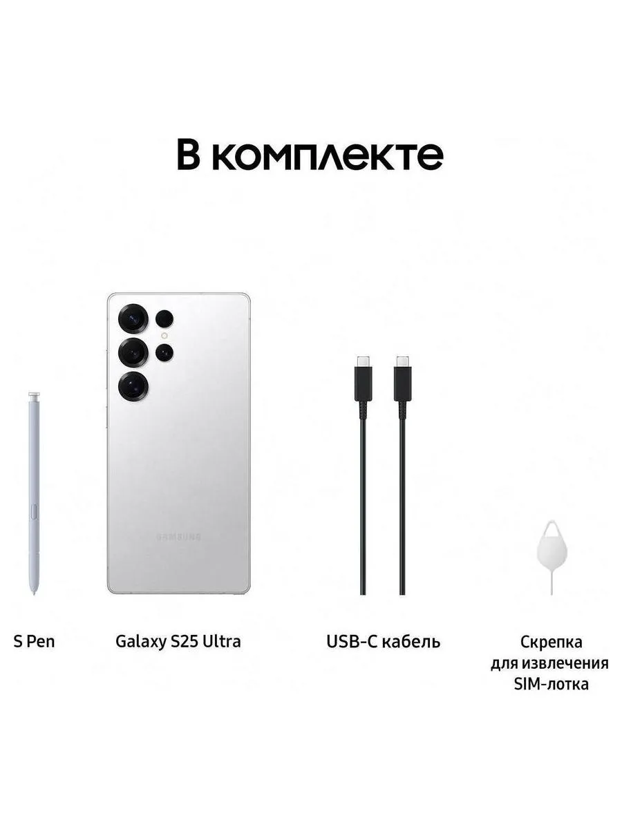 Описание товара Смартфон Samsung Galaxy S25 Ultra 12/512Gb (SM-S938BZSCCAU) Серебристый титан