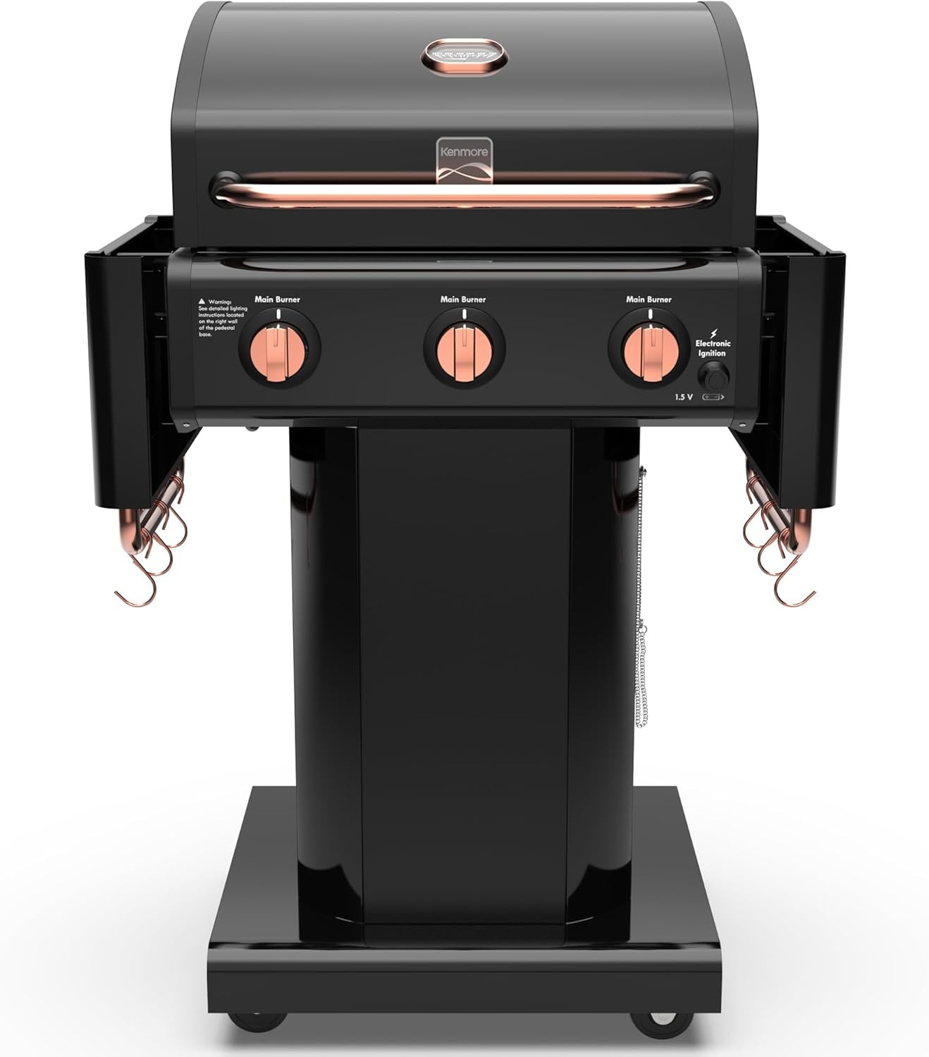 Kenmore 3-Burner Compact Gas Grill with Foldable Sides