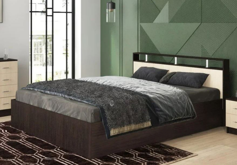 Современная кровать Арина обладает не только стильным дизайном, но и высоким качеством. Основание кровати - ламели из натуральных материалов, что обеспечивает оптимальную поддержку и комфорт во время сна. Изголовье кровати завершает мебельная полка на хромированных трубках. Это добавляет кровати Арина особую изысканность и нотку элегантности. Кровать Арина изготовлена из высококачественной ЛДСП, что обеспечивает прочность и надежность конструкции. Такой материал является долговечным и устойчивым к повреждениям, что гарантирует долгую эксплуатацию кровати.