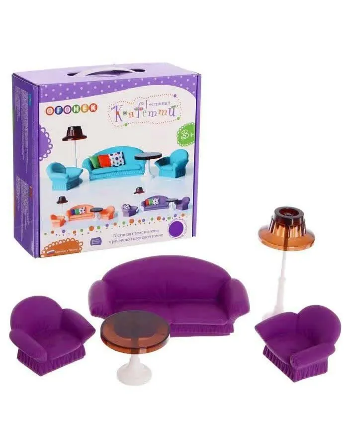 Описание товара Мебель для кукол Огонек Конфетти "Гостиная" (фиолетовая) арт.С-1580 /6